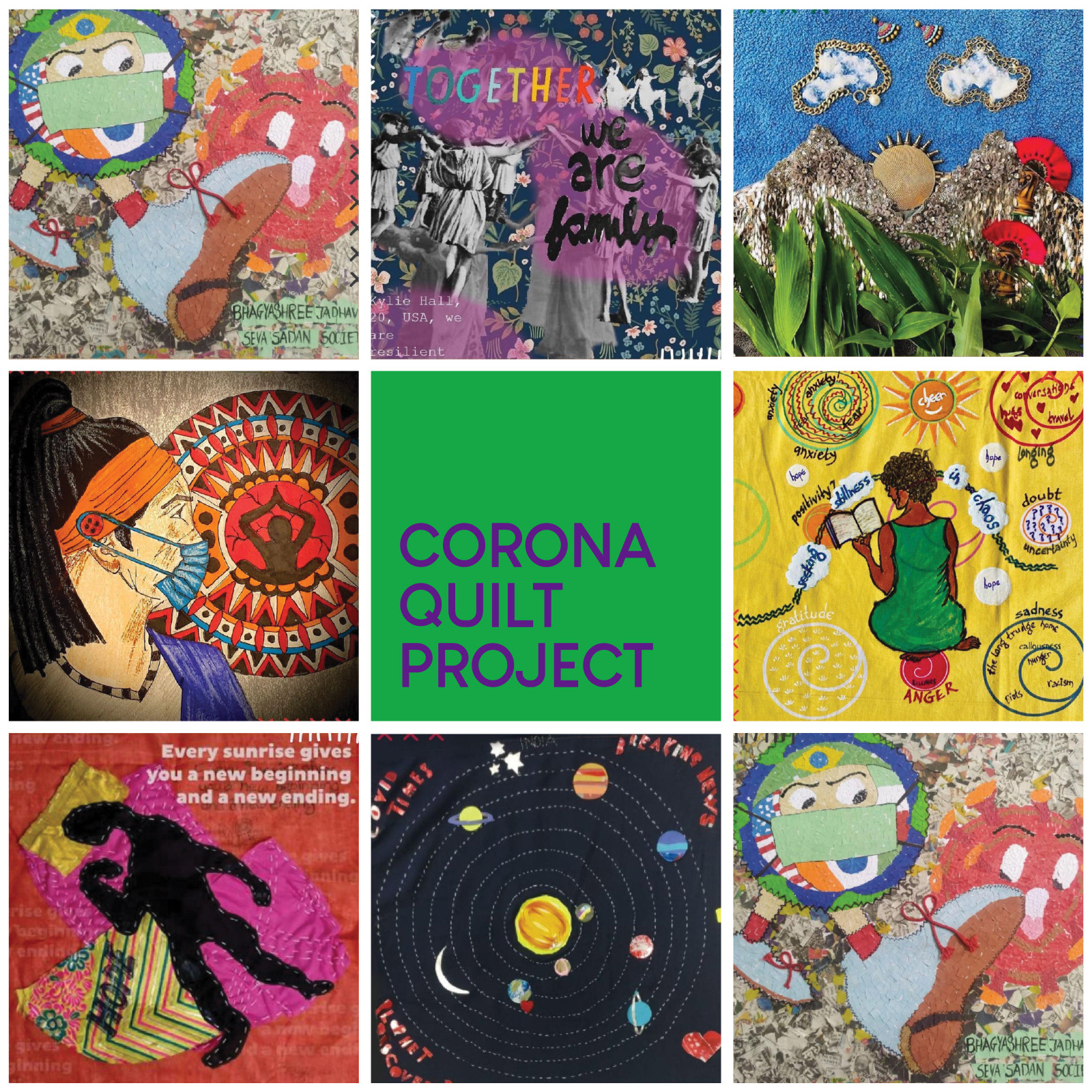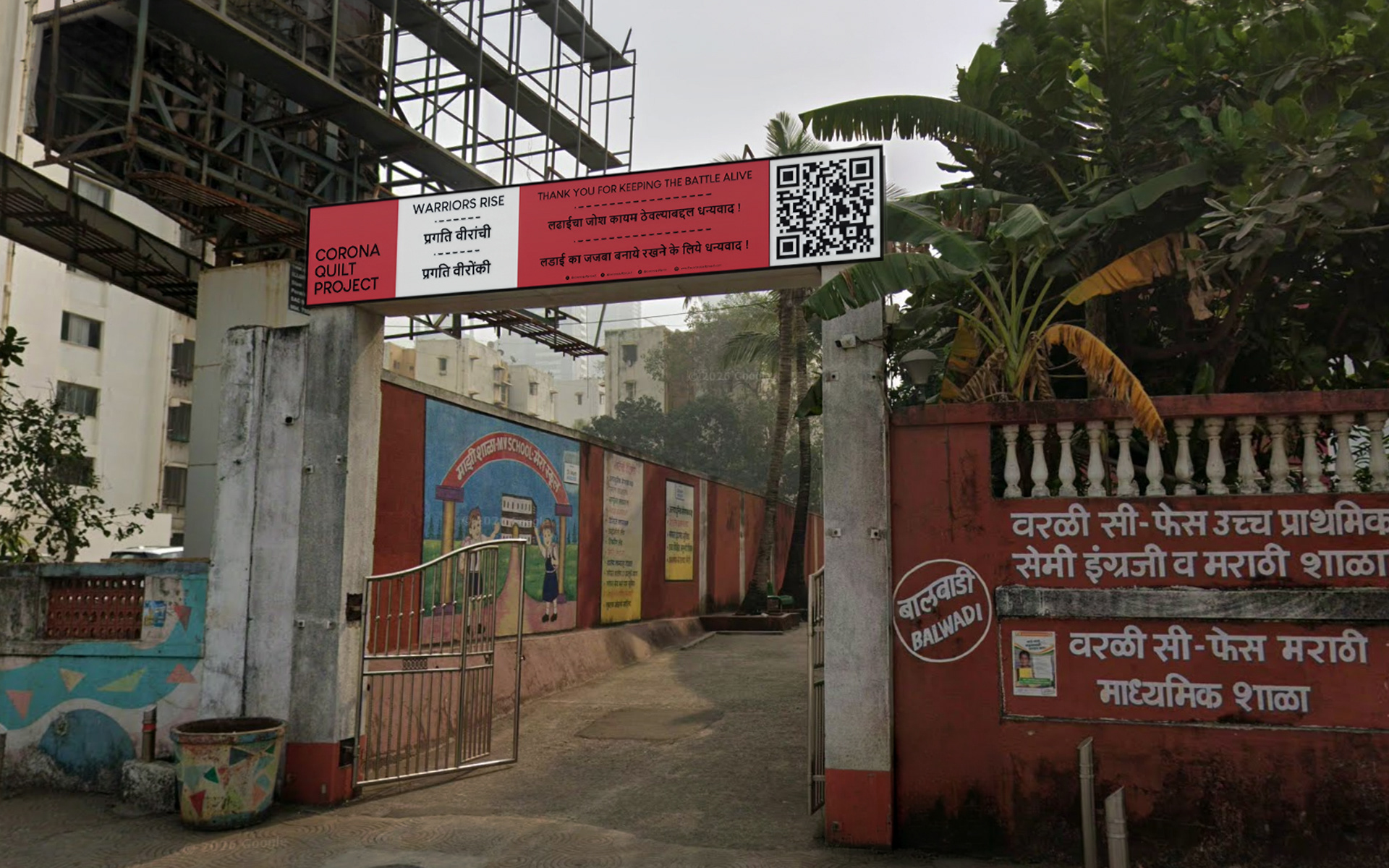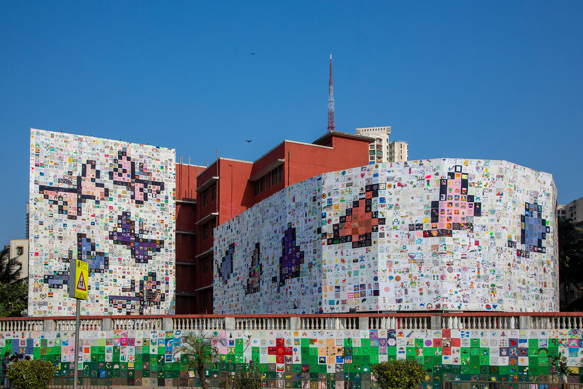 The Corona Quilt Project was conceived in the early weeks of the COVID-19 pandemic as a way to bring communities together through art. Founded in Mumbai, the project invited people to contribute handmade or digital squares of art, each one a personal expression of their experience of the pandemic. Those squares were stitched together into large-scale quilts and installed across public spaces in the city, on the facades of buildings, on buses, and at schools. What began as a small community initiative gathered over 10,000 physical and 5,000 digital contributions, and culminated in five major installations across Mumbai in 2021.