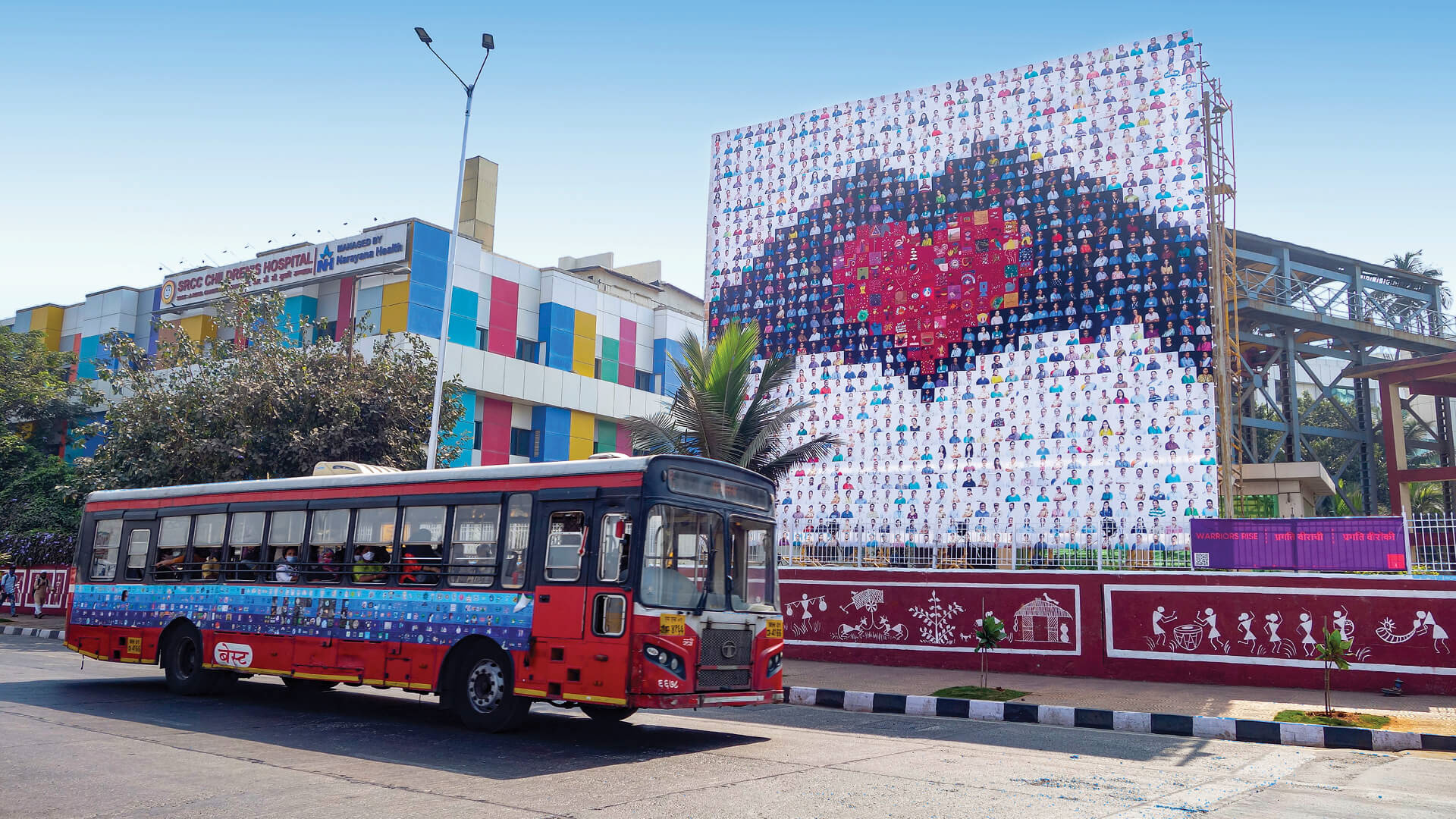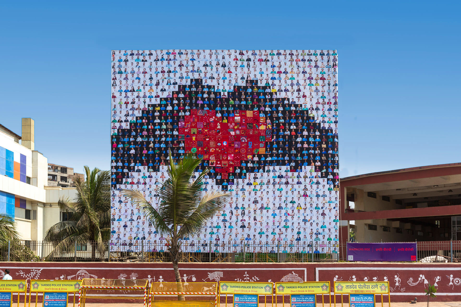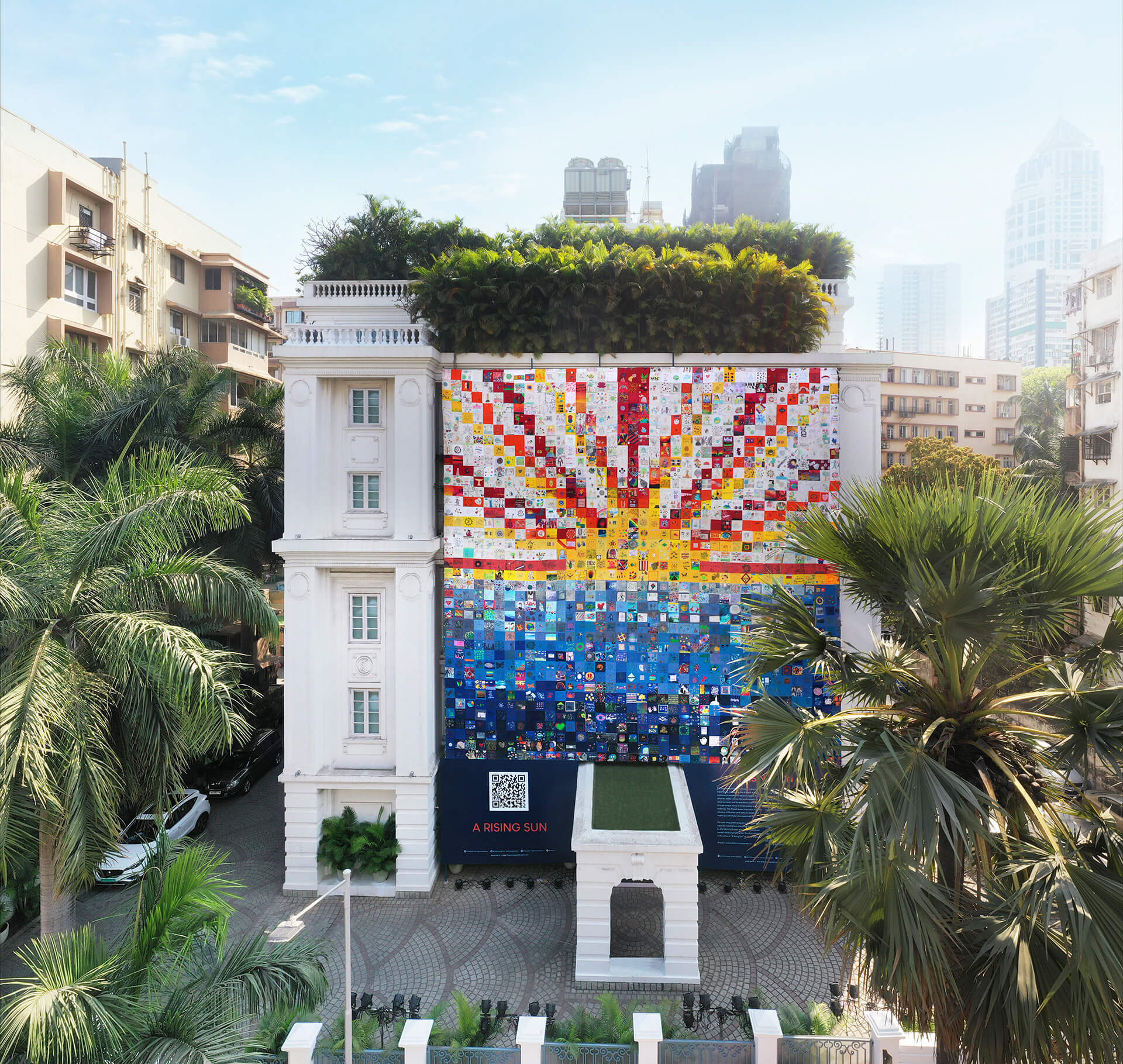 The Corona Quilt Project was conceived in the early weeks of the COVID-19 pandemic as a way to bring communities together through art. Founded in Mumbai, the project invited people to contribute handmade or digital squares of art, each one a personal expression of their experience of the pandemic. Those squares were stitched together into large-scale quilts and installed across public spaces in the city, on the facades of buildings, on buses, and at schools. What began as a small community initiative gathered over 10,000 physical and 5,000 digital contributions, and culminated in five major installations across Mumbai in 2021.