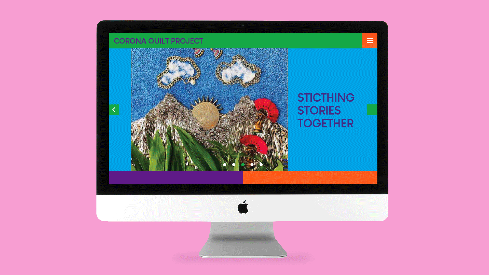 The website was designed to reflect the community nature of the project, giving equal visual weight to the contributed artworks and the large-scale installations. The grid structure drew on the quilt format, with colour-blocked sections echoing the patchwork logic of the physical work. Navigation was kept simple and accessible, designed to work for a broad audience without requiring any prior familiarity with the project.
